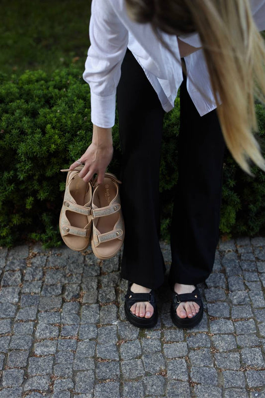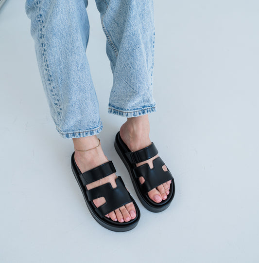 Босоніжки з трьома паралельними ремінцями чорні