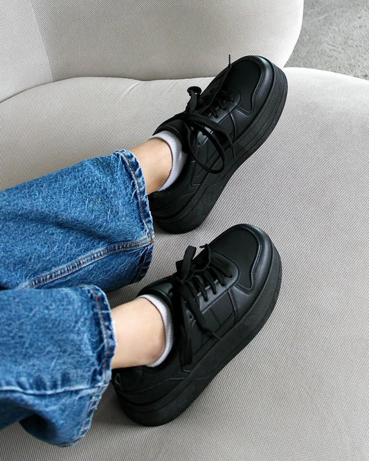 Базові чорні кросівки на широкій підошві