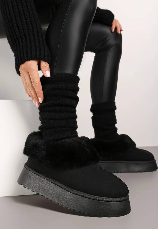 Уги на платформі еко-замш з хутром чорні (нова колекція)
