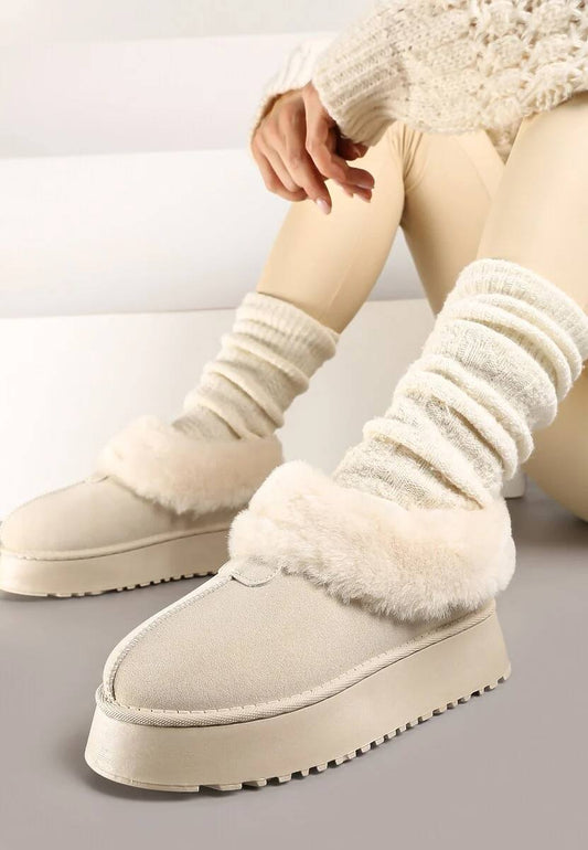 Уги на платформі еко-замш з хутром світло-бежеві (нова колекція)
